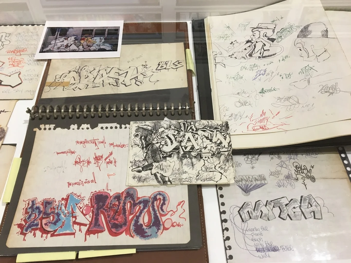 And the art itself is incredible - the clean lines of the lettering, the colors, the boldness of the forms. There were about 90 prints in the first room, arrayed in rows across an entire gallery wall, as well as pages and pages of sketchbooks where writers worked out their designs (honestly SO COOL, maybe my favorite part). There was also a recreation of Chalfant’s studio and another 2 walls of street photography - writers at work, but also breakdancers and mattress-jumpers and kids in custom-decorated pants and gathered around fire hydrants and posing on stoops. Then in the next room, there were several life-sized model cars and a video on loop with more photos of subway cars - 500 in all!! - with such accurate subway sounds playing that it took my brain a minute to register that no, I couldn’t hear the subway from this gallery, it’s part of the exhibit.